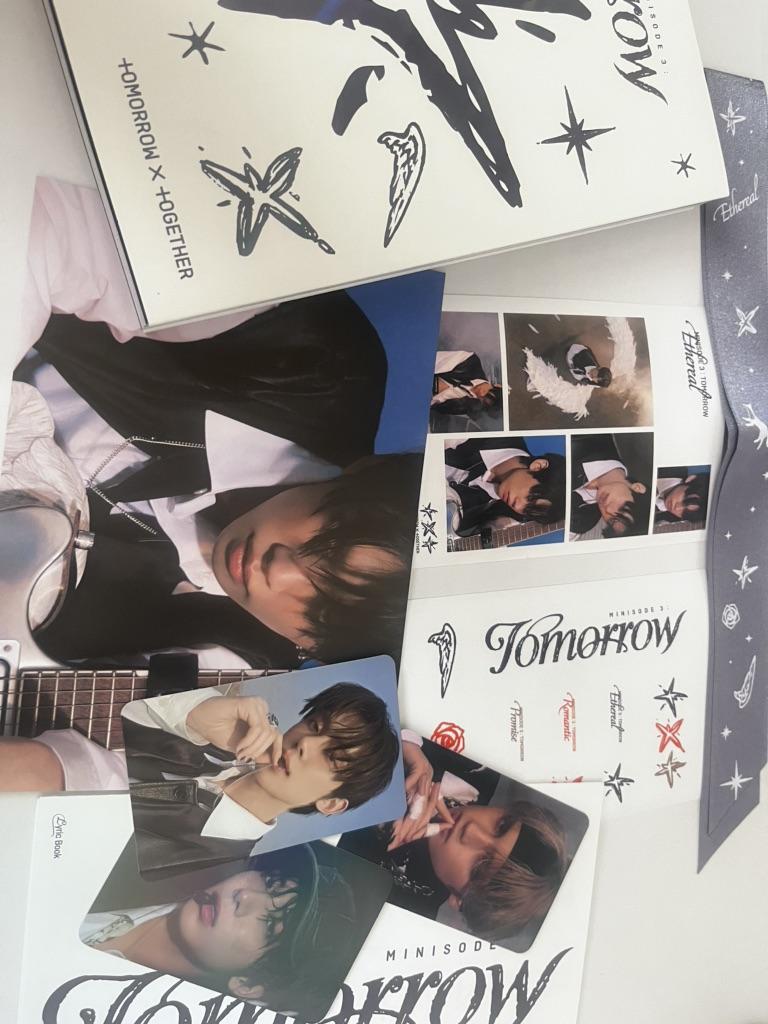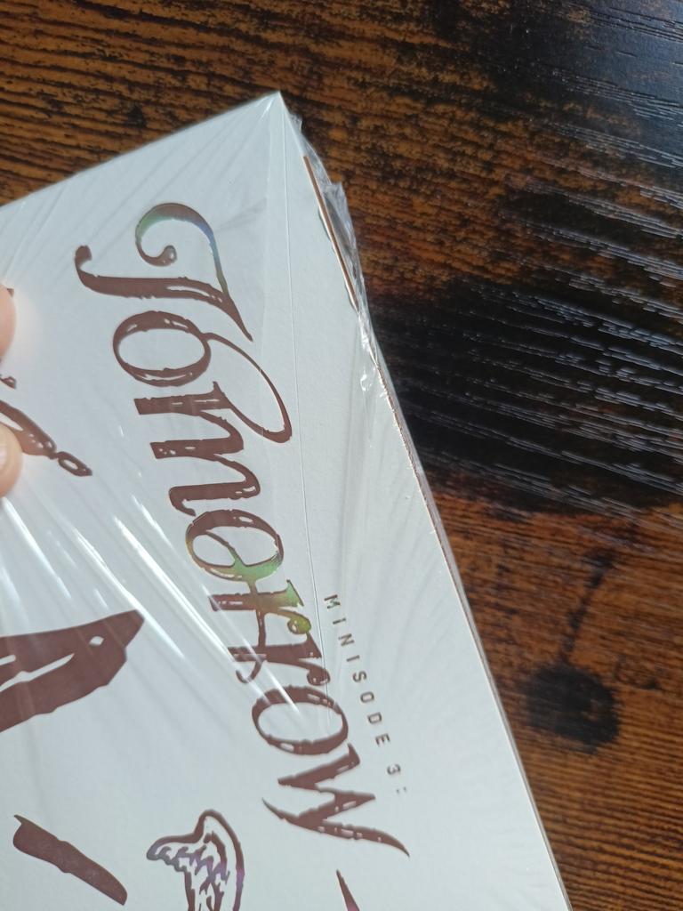 L'album est arrivé bien emballé, sans dommage. L'album lui-même contenait une carte de Taehyung, et en cadeau, ils incluaient des cartes de Beomgyu et, encore une fois, de Taehyung. Merci!! :)