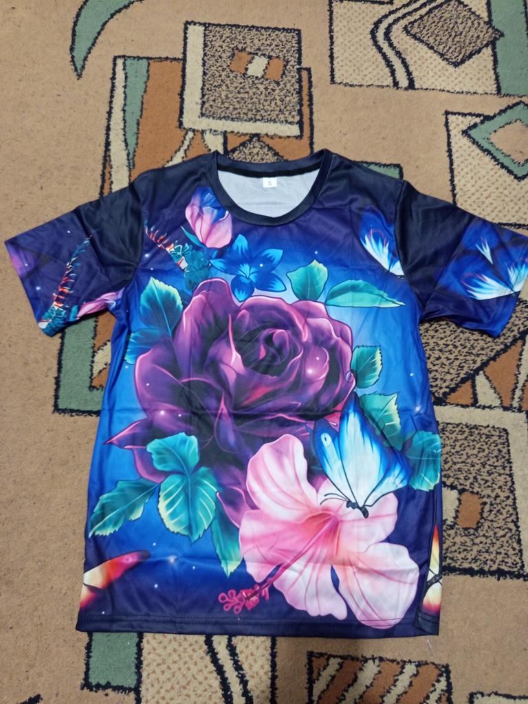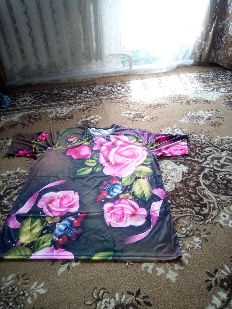 Le modèle diffère de la photo. Un t-shirt ordinaire est livré avec un imprimé comme sur la photo. La taille est plus longue que sur la photo