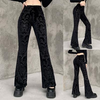 2021 automne femmes Goth taille haute Hip Hop pantalon évasé femme Sexy dentelle Patchwork sarouel dames Vintage élégant velours pantalon de noël