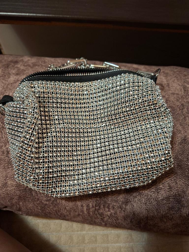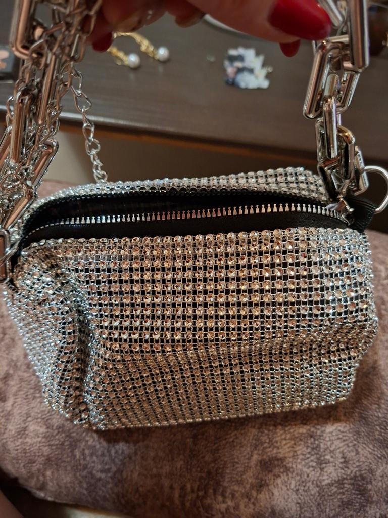 Sac Seau Entièrement Strass, Sac de Bal à Chaîne Pailletée, Mini Sac Bandoulière pour Femme