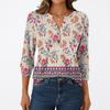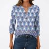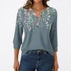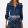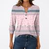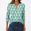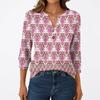 T-shirt Manches 3/4 Décontracté Mode Femme Imprimés Col V Boutonné