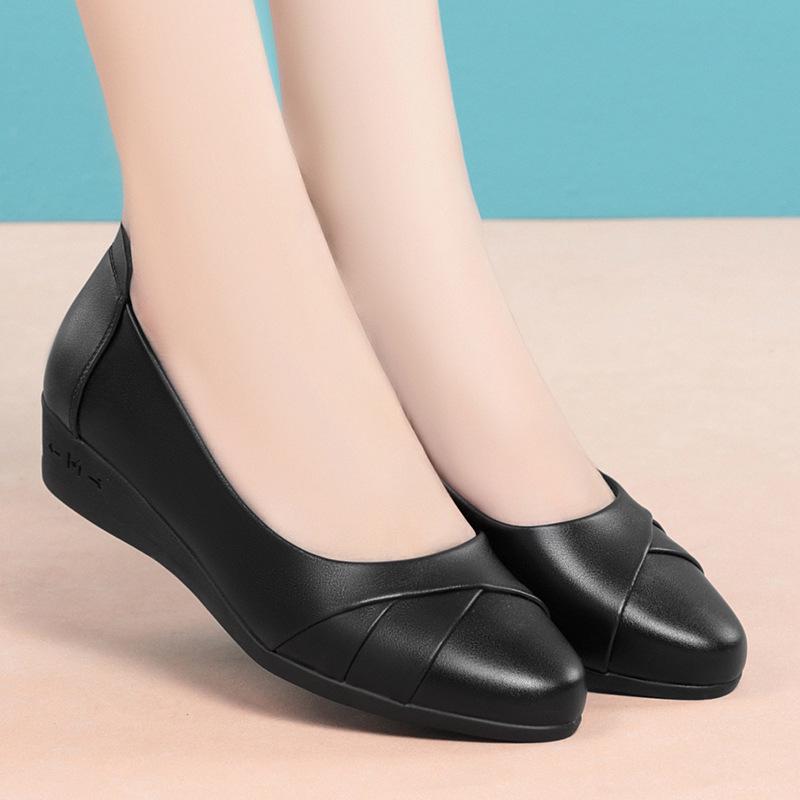 Chaussures en cuir à enfiler pour femmes printemps et automne: Ballerines confortables à semelles souples pour les personnes d'âge moyen et les personnes âgées