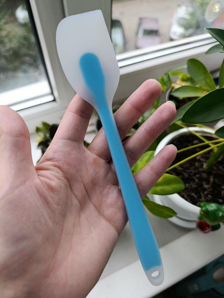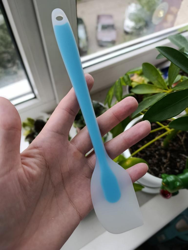 Spatule pour cuisiner 🥘 Petite, mais très pratique. Longueur 21 cm, taille de la spatule 7*4 cm. Fabriquée en silicone de qualité, sans odeur. Recommander!