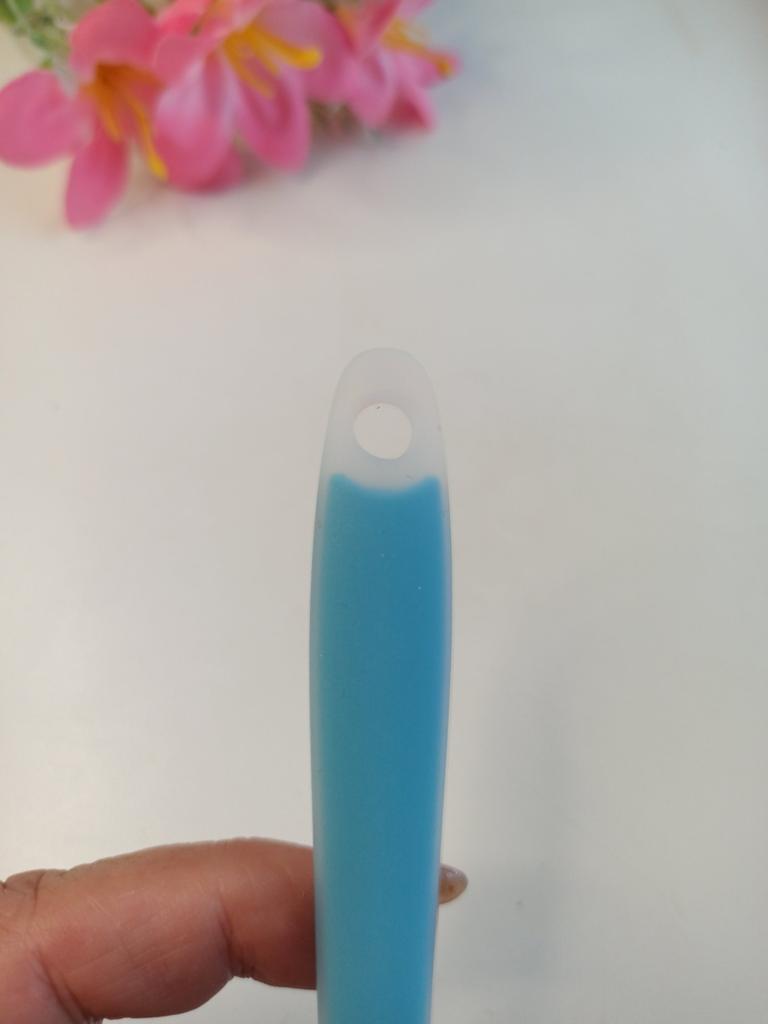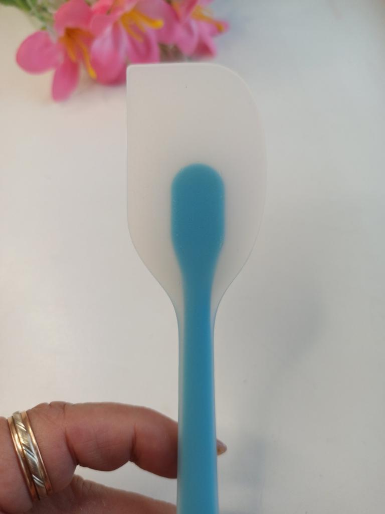 Cette spatule est un outil essentiel et indispensable pour tout amateur ou professionnel de la pâtisserie et de la cuisine en général. Le modèle que nous avons vu (avec manche bleu et pelle blanche ou similaire, en silicone) est particulièrement populaire pour son design et sa fonctionnalité.. ⭐ Points Forts Polyvalence : Elle est parfaite pour une grande variété de tâches: Mélanger des pâtes, des crèmes, des glaçages ou des sauces douces. Racler complètement les bols et les récipients, grâce à leur flexibilité, sans laisser de résidus. Étaler les glaçages, comme le chocolat que l'on voit sur le gâteau, avec facilité et précision. Matériau de Qualité (Silicone): Résistant à la chaleur : La silicone de bonne qualité supporte les hautes températures (beaucoup jusqu'à 250^\circ\text{C} ou plus), la rendant sûre pour travailler avec des mélanges chauds ou près de sources de chaleur. Doux et Sûr : Ne raye ni n'endommage les surfaces antiadhésives des casseroles et poêles.
