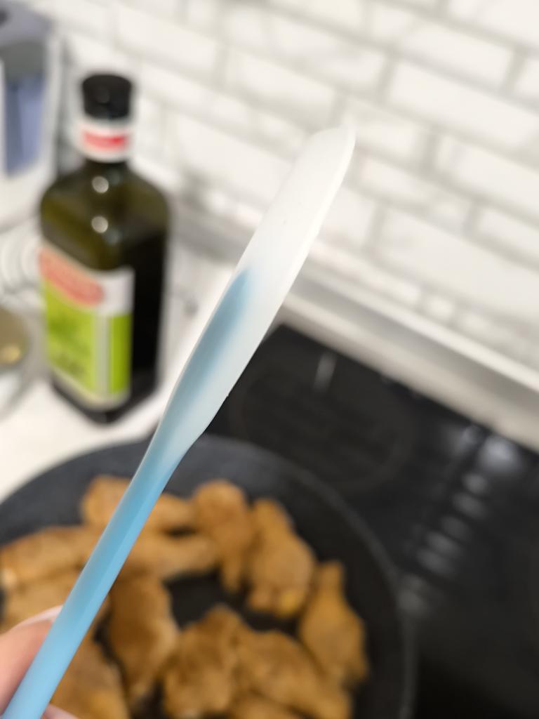 Spatule pour cuisiner 🥘 Excellent. Petite, mais très pratique. Résistant à la chaleur. Longueur 21 cm, taille de la spatule 7*4 cm. Fabriquée en silicone souple de qualité, sans odeur. Recommander!