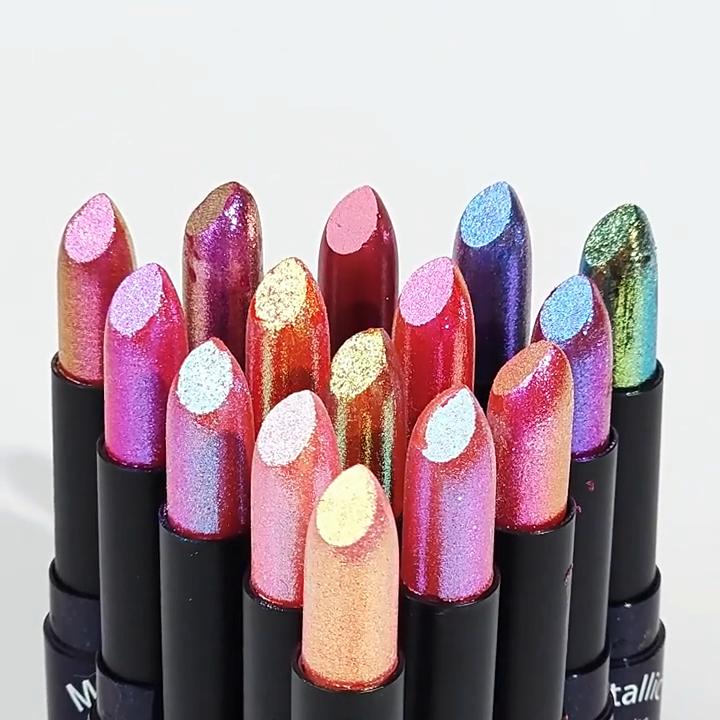 Rouge à lèvres à paillettes fines 15 couleurs Rouge Noir Nacré Teinte à lèvres Imperméable Anti-transfert Flash Longue tenue Facile à colorer Rouge à lèvres Diamant