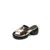 Mode 2025 Sandales d'été Cuir Fendu Bout Rond Pantoufles Plateforme Chaussures de Gladiateur Talons Épais Chaussures pour Femmes Talons Hauts Faits Main