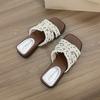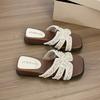 Perle Vacances françaises pantoufles cool pour femmes été 2025 nouvelles à semelle plate antidérapantes avec jupe douces pantoufles à une bride