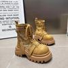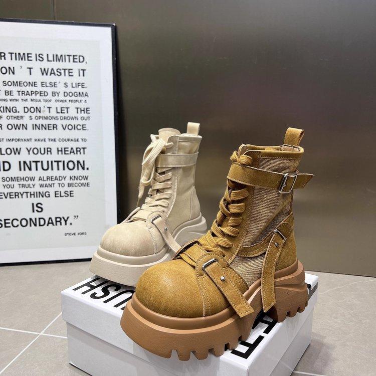 Martin boots women's 2025 new versatile splicing cloth thick-soled muffin strap casual locomotive boots small short boots