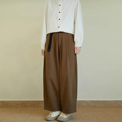 Automne Pantalon Long pour Femmes Japonaises Polyvalent Simple Ample Couleur Unie Jambes Larges