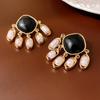 Boucles d'oreilles vintage ovales à effet vieilli en huile goutte à goutte en forme de C pour femmes - Boucles d'oreilles rétro de luxe léger