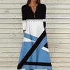 Robe Longue d'Été Décontractée pour Femmes Col en V Boutonnée Rétro Imprimé Géométrique Manches Trois-Quarts Avec Poches
