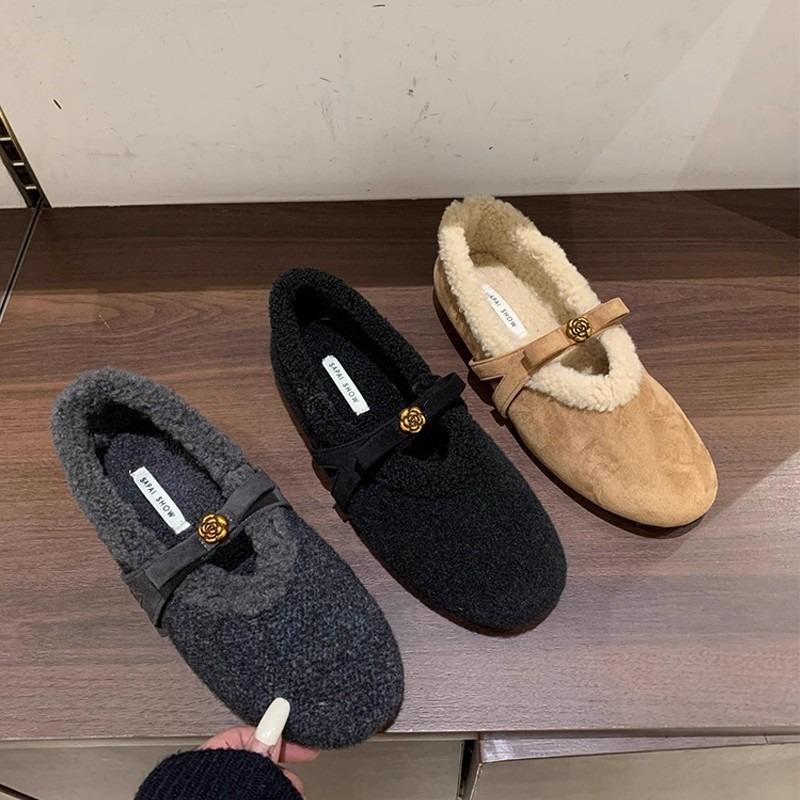 Peluche de fée automne et hiver nouvelles chaussures Mary Jane à semelle plate et souple chaussures en coton chaud