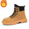 Bottes de neige pour hommes Bottes de travail chaudes en peluche Imperméables Antidérapantes à semelles épaisses Chaussures de randonnée d'extérieur pour hommes Montantes Escalade Marche