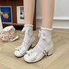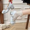 Chaussures de Mode à Talons Carrés Été Nouveau Bout Rond Décolleté Nœud Papillon Boucle Métallique Ligne A avec Talons Hauts Antidérapants