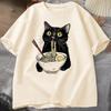 Noodle Cat Print Short-sleeved Personalized Street Stylish Versatile Loose Sweatshirt T-shirt
