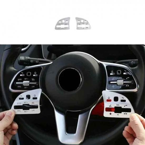 Cover Trim For Benz E-Class W213 Steering Wheel Silver Steel Button Frame 16-21