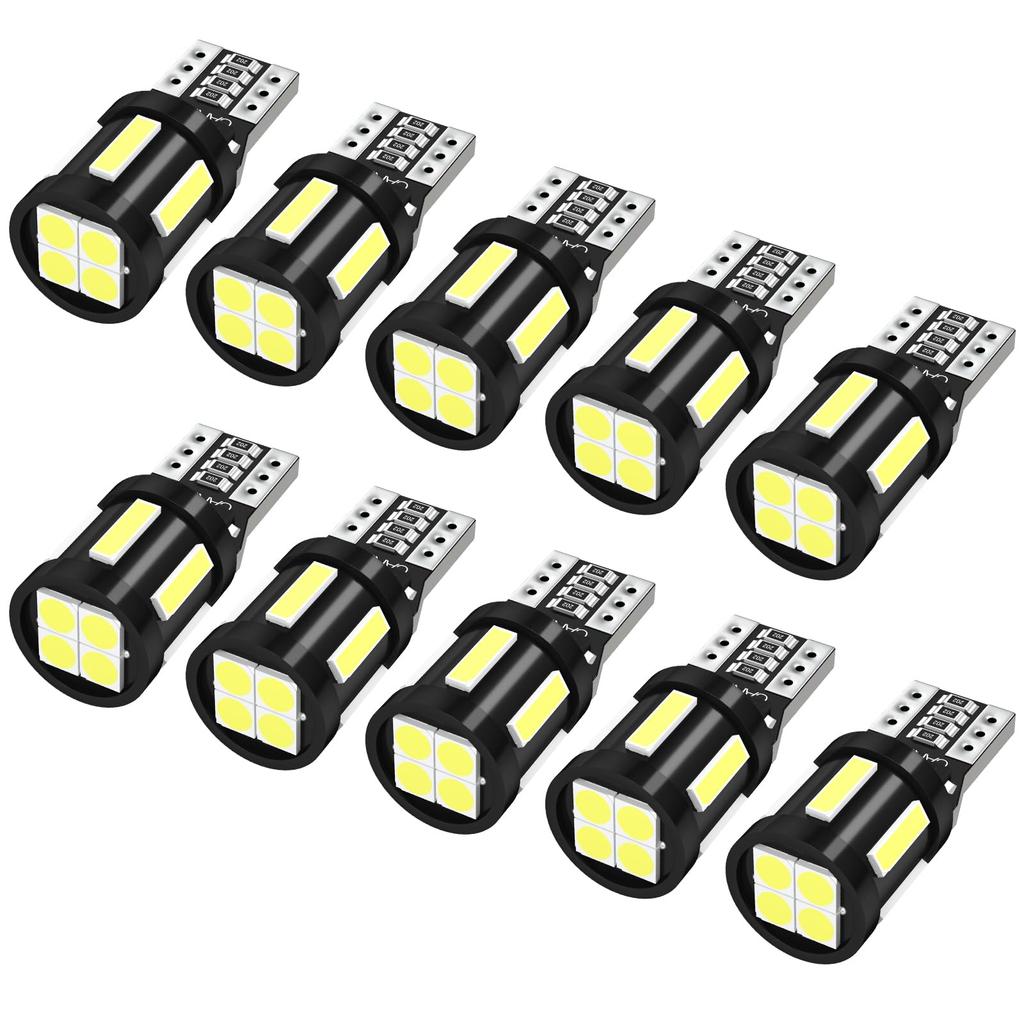SUPAREE T10 LED Bulbs 10-Pack, White 6000K, 10-SMD High Brightness, Vehicle Inspection Compatible, 12V for Position, License Plate & Interior Lights