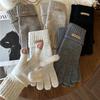 Simple Style Fashion Plus Velvet Thicken Women Winter Keep Warm Touch Screen Pattern Knitted Wool Gloves Elasticity Soft Mittens