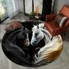 3D Fire Horse Round Carpet Animal Printed Round Rugs Black Living Room Computer Desk and Chair Floor Mat Bedside Table Mat