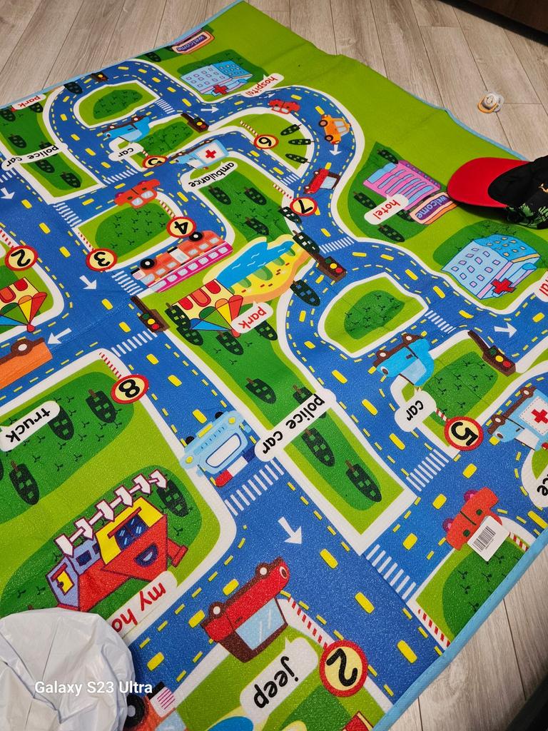 Town City Traffic Baby Crawling Mat Green Road ბავშვები თამაშობენ პიკნიკის ხალიჩას