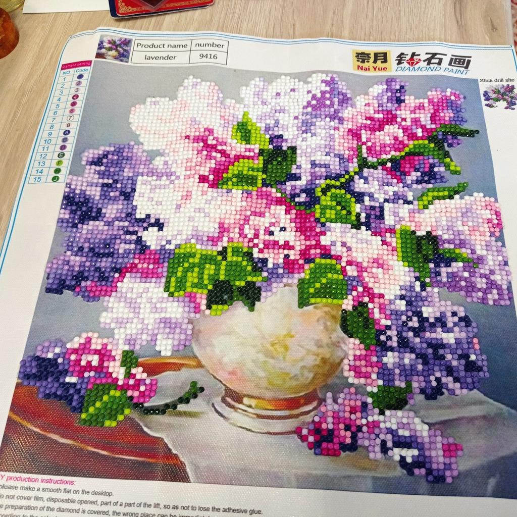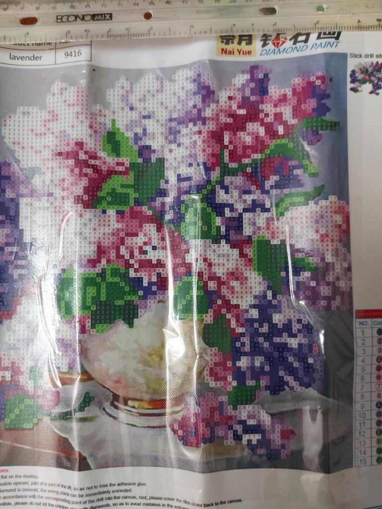 Ačiū. Gavau deimantinį siuvinėjimą. Viskas yra komplekte. Spauda gera, aiški. Tai alyvinis raštas, o ne levandų. Ačiū, man patiks.