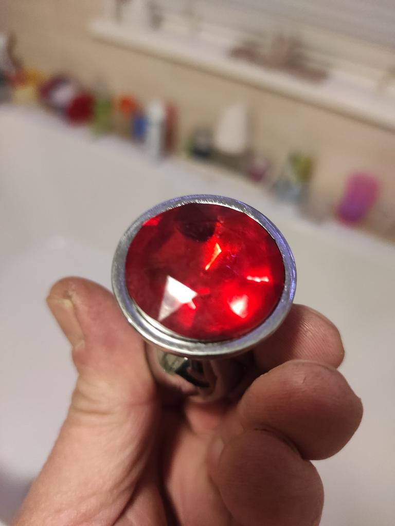 Analinis kištukas atrodo gerai. Jokių kraštų, kuriuos reikia iš naujo apdailinti. Moteris susijaudinusi.