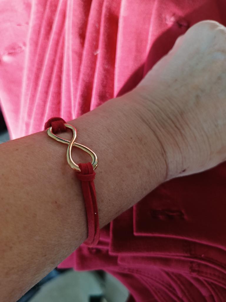 Tiks dėl įvairovės. Kai pirmą kartą pamačiau, išsigandau, kad jis labai mažas, kaip vaikas.... Užsegus ant paskutinės jungties jis laisvai priglunda, bet atrodo nelabai gerai - pusė išeina būk odinis nėrinys ant rankos, o pusė jo – grandinėlė. Ir tokios mielos, man patinka odinės, tokios kuklios apyrankės. Negalėjau nuotraukoje parodyti kaip sėdi, sunku pačiam užsisegti, ypač patekti į paskutinę nuorodą.