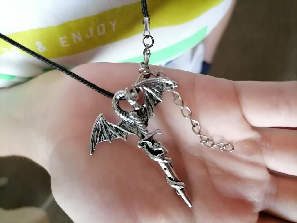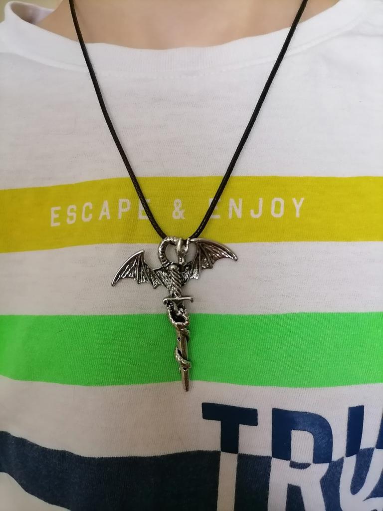 Vintažiniai vyrų viduramžių kryžiaus drakono kardo punk stiliaus karoliai
