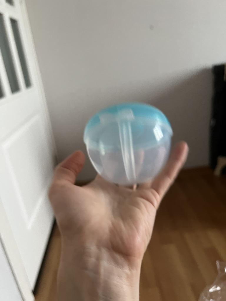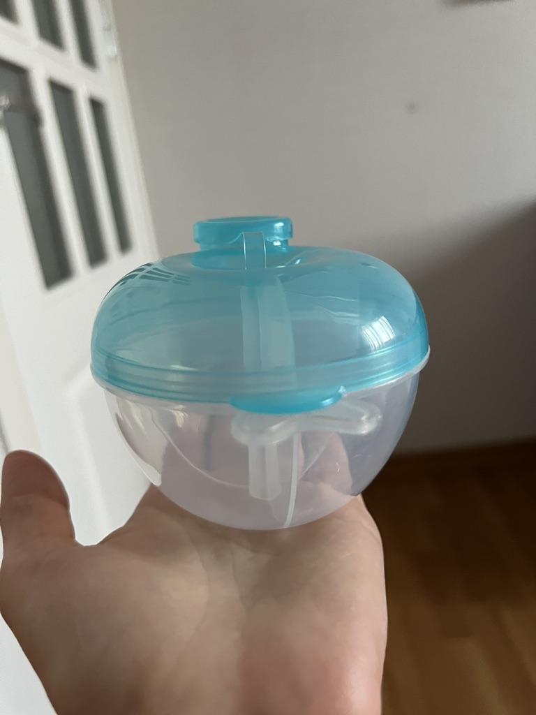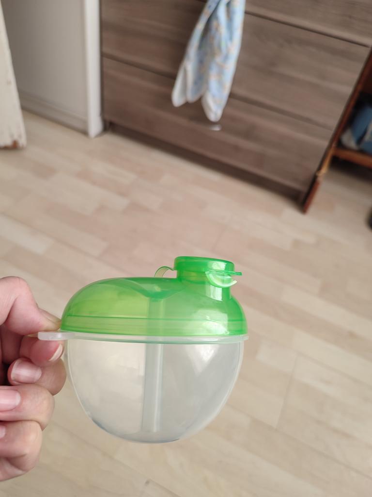Atėjo nepažeistas. Labai patogu naudoti tokį padėkliuką, kai maitinate kūdikį mišiniais, užpilkite proporcija ir viskas, nereikia kiekvieną kartą matuoti šaukštais