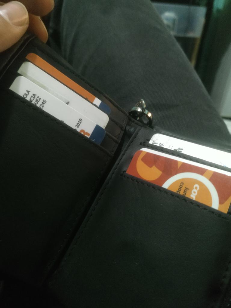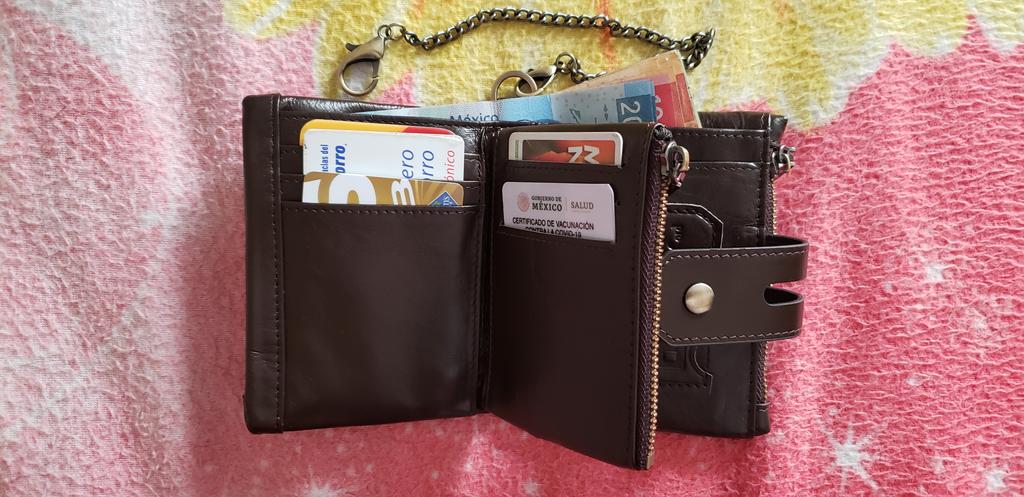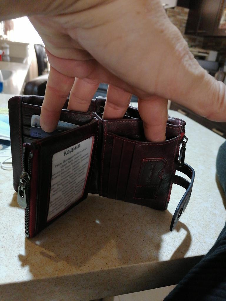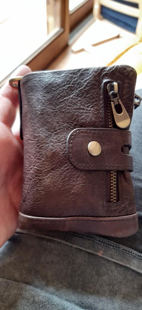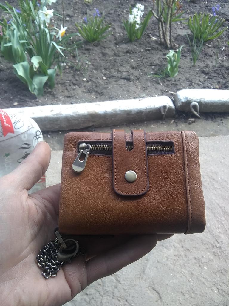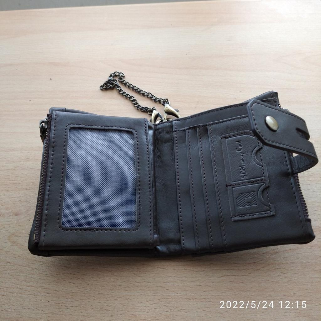Pilna angų kreditinėms kortelėms, graži oda, grandinėlė, apsauganti nuo vagystės, daug vietos.