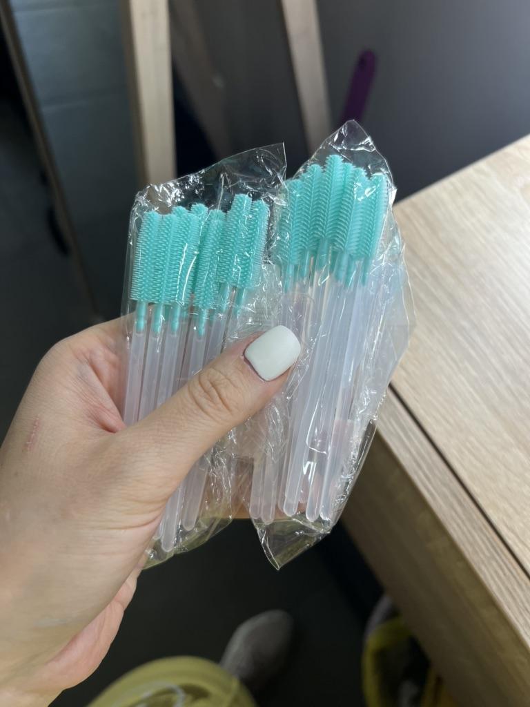 Šukos blakstienų priauginimui vienkartinis antakių šepetėlis.