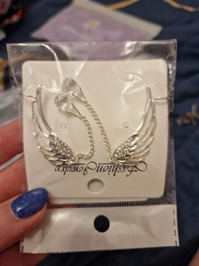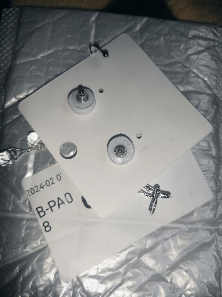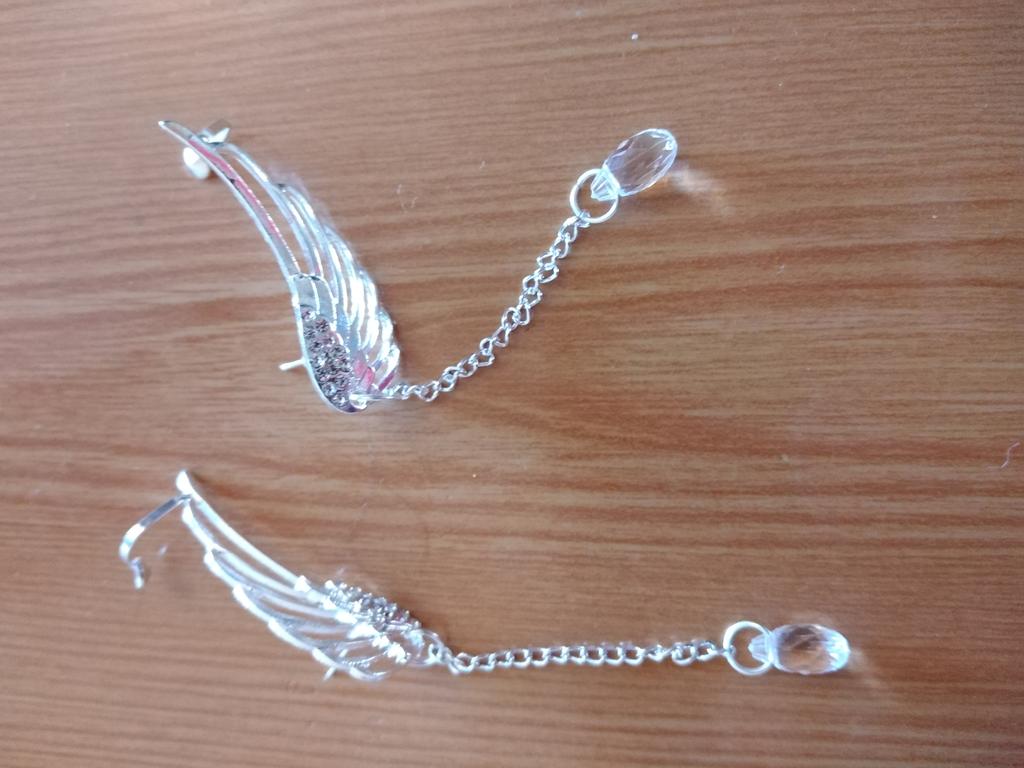 Labai nustebau, kai atidariau aka, jie atrodo kaip paveikslėlyje, bet gražesni sidabriniai labai gražūs jų taip pat yra mažas kalnų krištolas apačioje, kur smeigė įeina į ausį, labai malonu rekomenduoju, aš juos išbandžiau ir kabliuką užsidėti ant ausies neužsilieka jie nėra pakankamai ilgi, kad uždengtų mano ausį arba aš turiu ilgas ausis lol