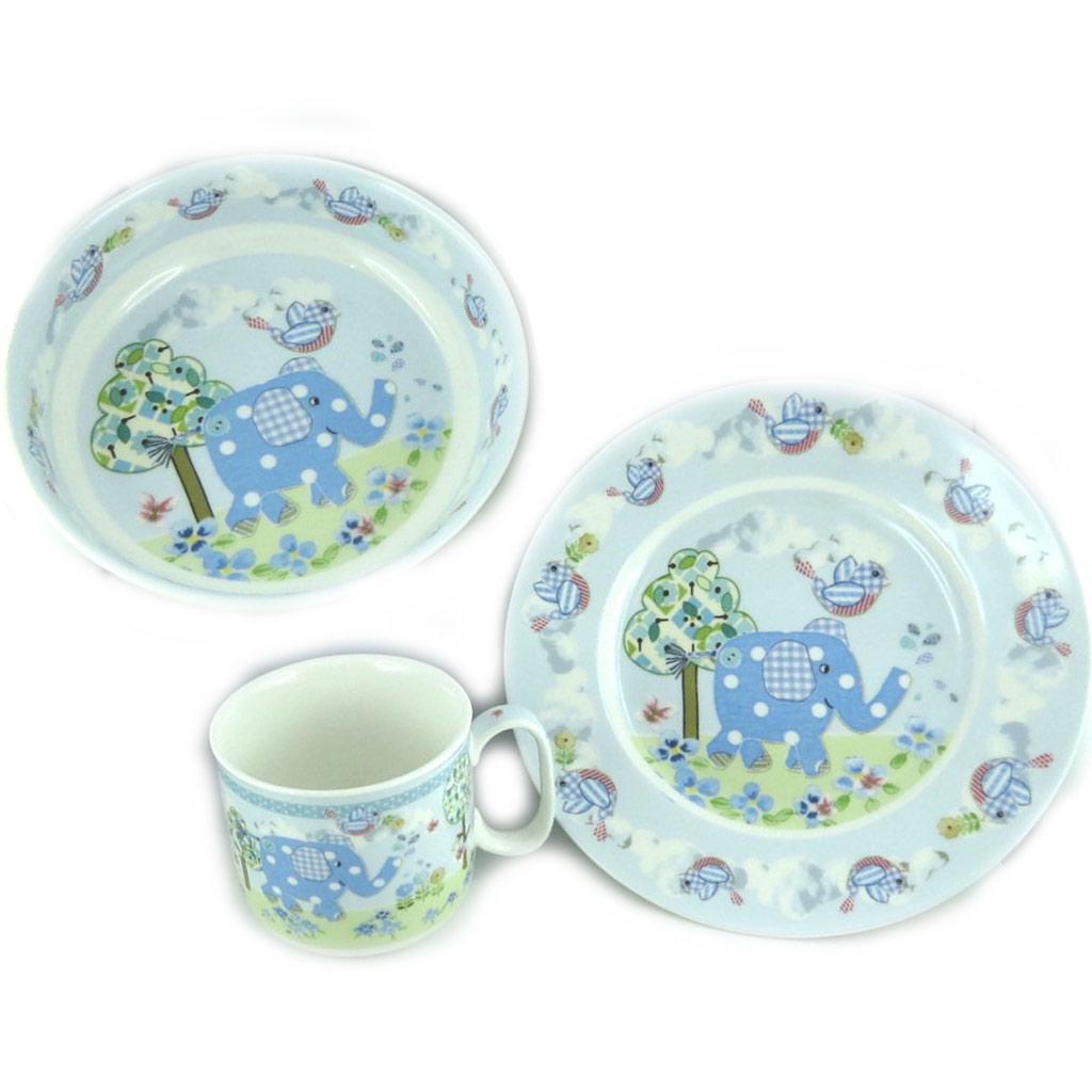 Les Trésors De Lily [L1962] - Set repas enfant céramique 'Eléphant' bleu (3 pièces)