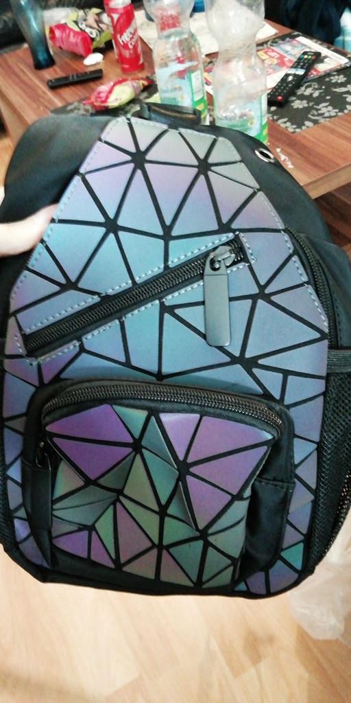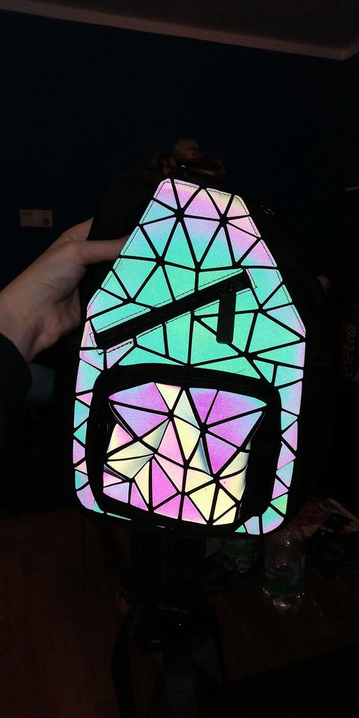 Šviečiantis krepšys Moteriškas geometrinis lazerinis kuprinės dygsniuotas pečių krepšys Holograminis lazerinis paprastas krūtinės krepšys