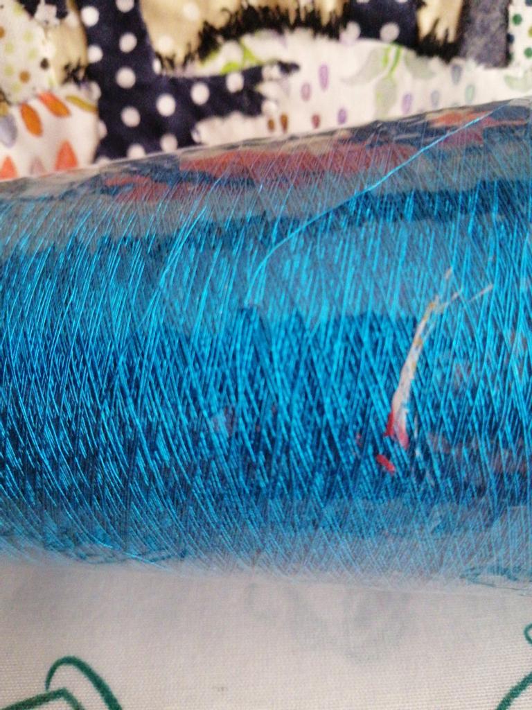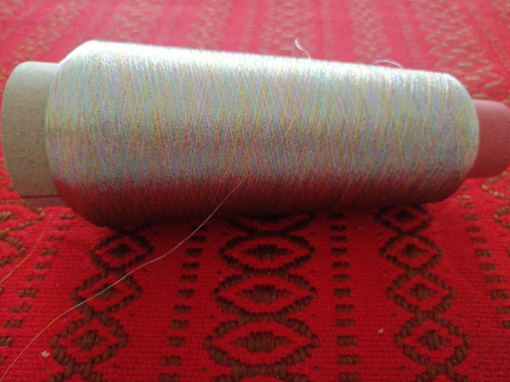 Labai plonas siūlas. Vienas siūlas praranda spalvą ir gražiai atrodo tik ant ritės.