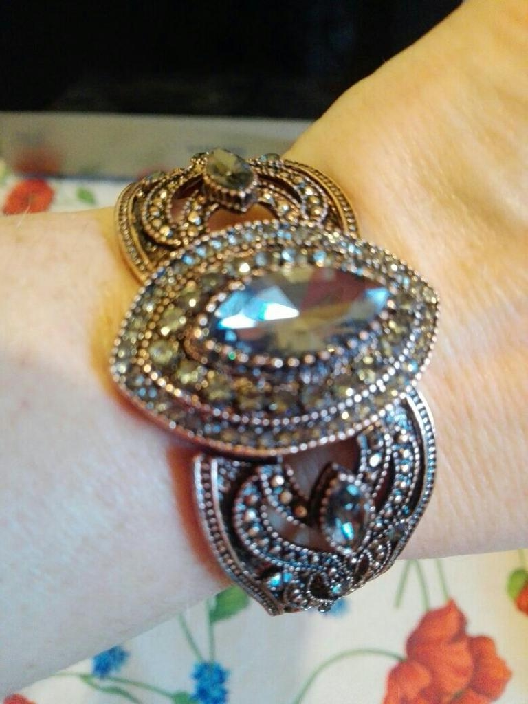 Pilkos spalvos krištolo apyrankės moterims Antikvarinės auksinės spalvos žavingos rankogalių apyrankės