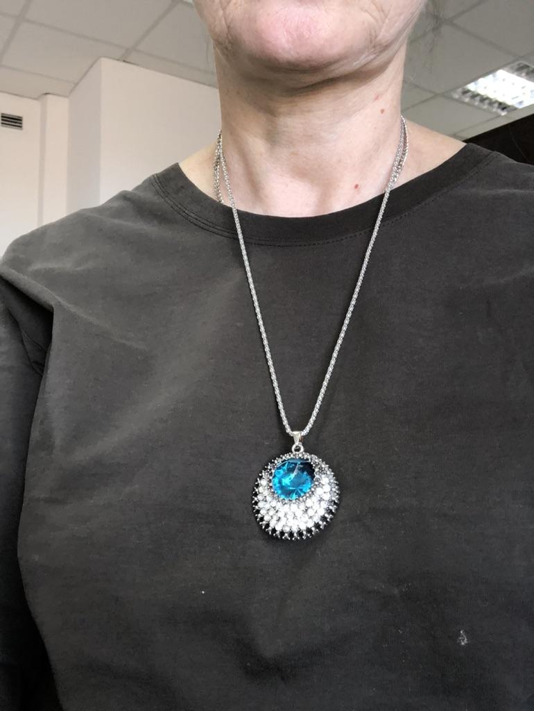 Ačiū už pakabuką - labai blizgus, šviesus, didelis! Grandinė normalaus ilgio. Tik aš tikėjausi, kad spalva bus labiau mėlyna, bet realiai tai buvo jūros žalia spalva. Bet tai irgi nėra blogai! Patenkinta pirkiniu! Ačiū!