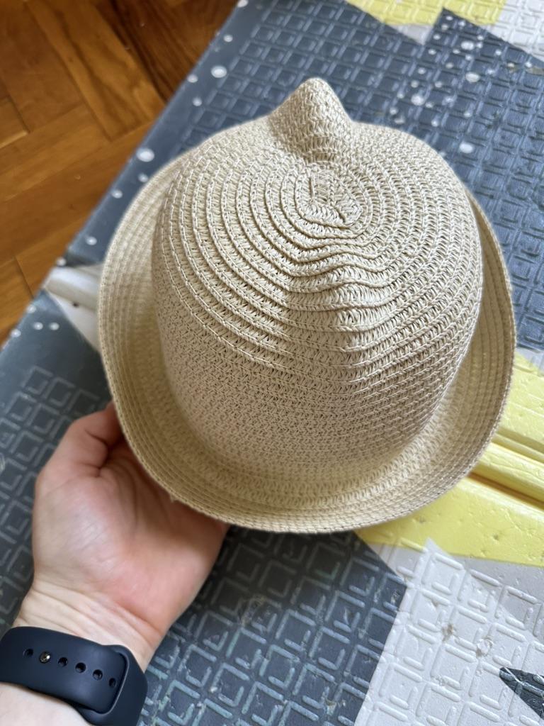 Graži kūdikių kepurė su ausimis, solidžiai šiaudinės kepuraitės vaikams vasaros paplūdimio kepuraitės nuo saulės