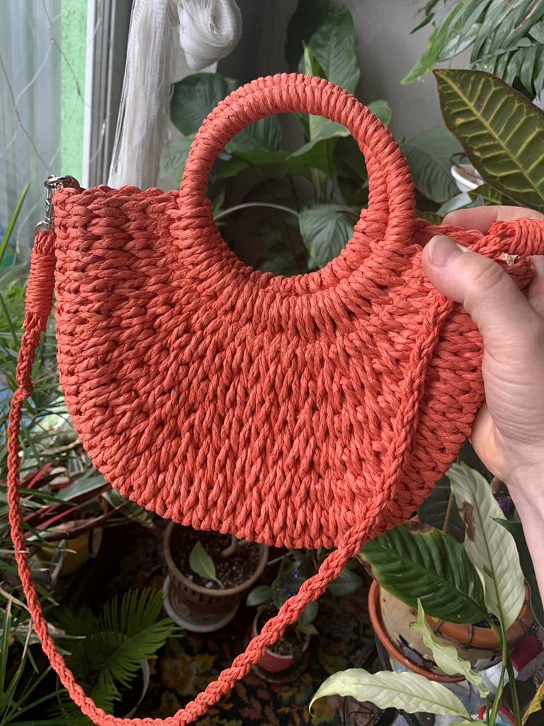 Yogodlns Moteriškas šiaudinis krepšys rankų darbo rankinė mėnulio formos nėriniuotas lankelis rotango krepšys, didelės talpos virvelė, laisvalaikio paplūdimio pečių krepšys