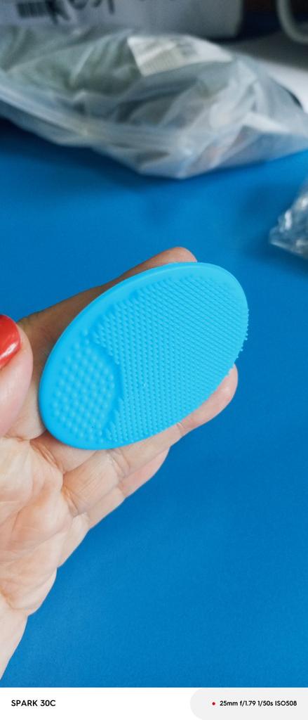 Rožinis veido prausiklis. Yra rankena - patogu laikyti. Silikoninės adatos nuvalys veidą. Ačiū