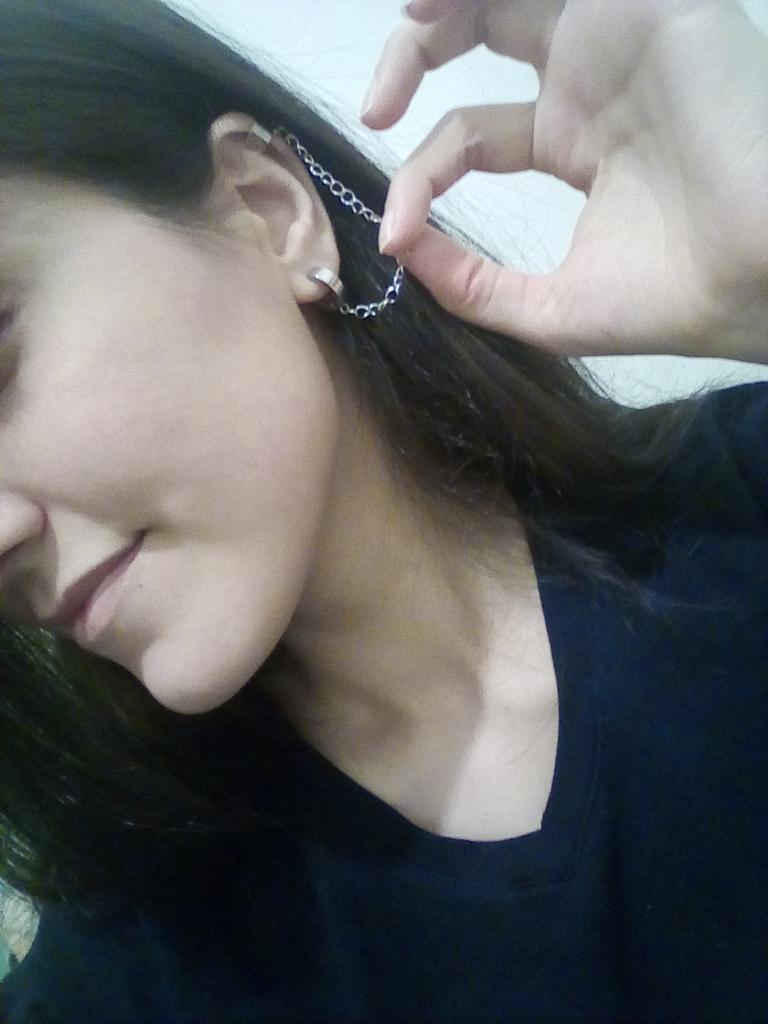 Nuotraukoje matosi, kad pradurta ausis, bet atvežus ji buvo užsegta, o grandinėlė per trumpa.