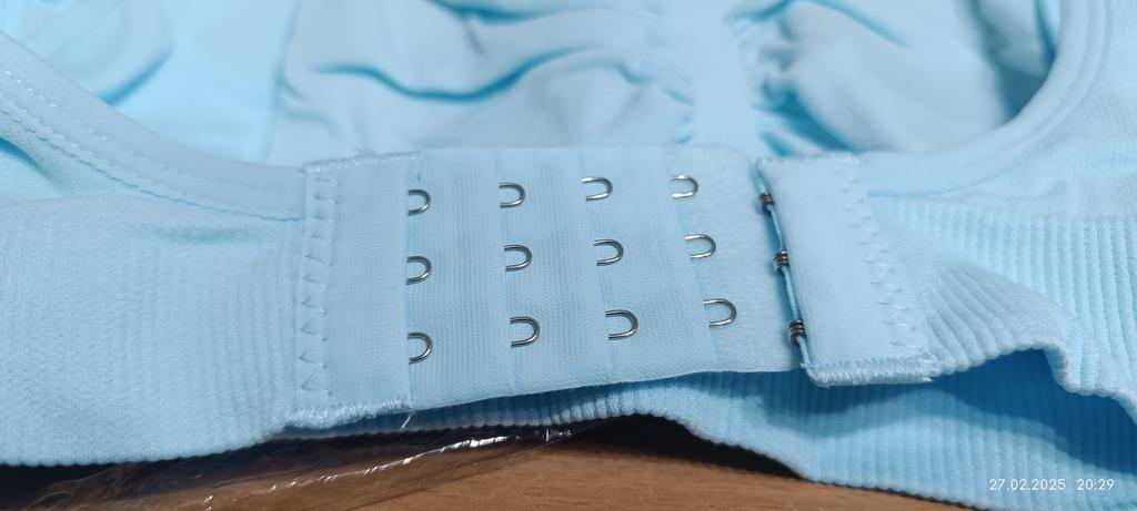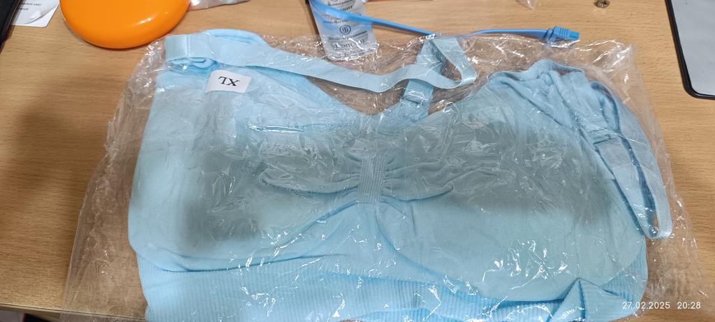 Buvo kombinuotoje pakuotėje. Labai elastinga, patogus kabliukas ant dirželio. Audinys sintetinis. Dydis M - ant mano OG 88 su A-B kaušeliu, net šiek tiek pasilieka, jei manote, kad audinys tempiasi. Putplasčio įdėklą galima ištraukti. Po naudojimo pridėsiu. Biustas tiesiog puikus! Labai patenkintas. Ištraukiau putplasčio įdėklą. Audinys megztas - niekur nespaudžia, kabliukai lengvai atsega viena ranka, petnešėlės reguliuojamos. Mano krūtys iki nėštumo buvo mažos, o dabar joms nereikia daug palaikymo, todėl negaliu įvertinti palaikymo lygio. Galiu pasakyti, kad patogus, nebrangus, gana greitai džiūsta. Be to, nešioju be laktacijos įklotų – gerai susigeria.