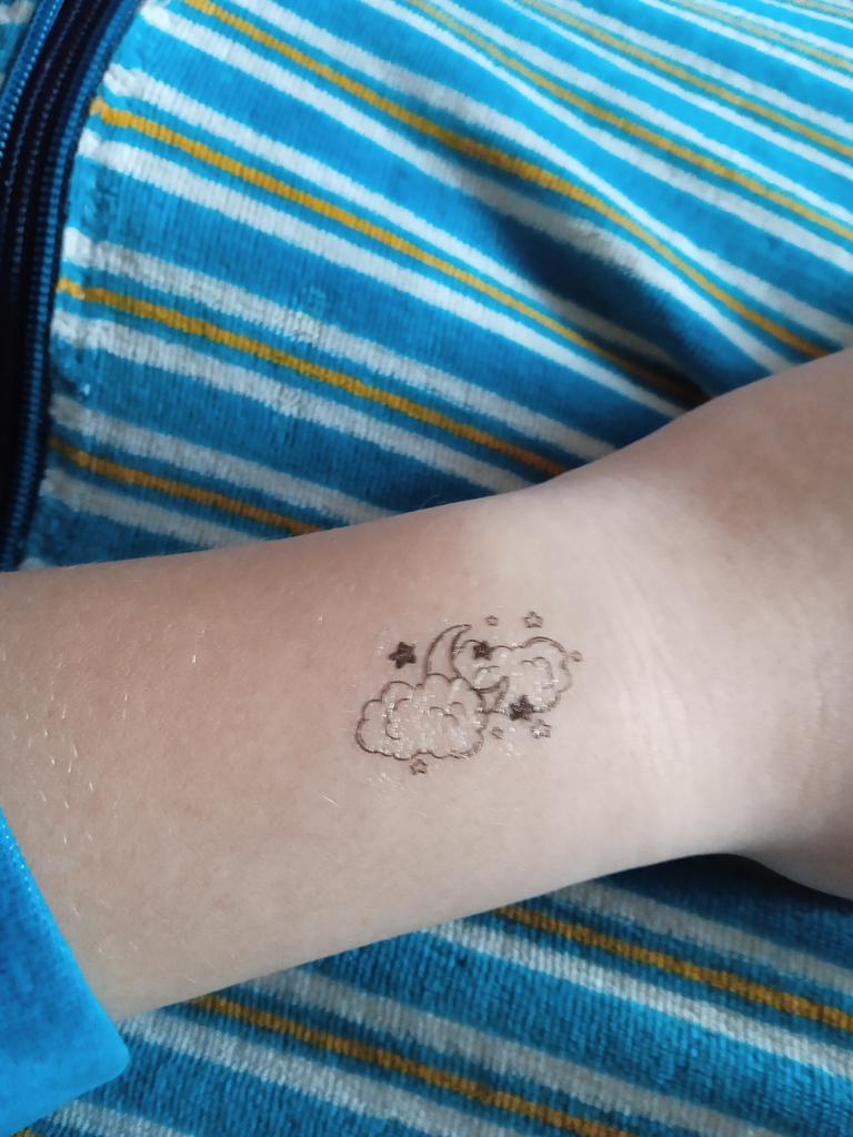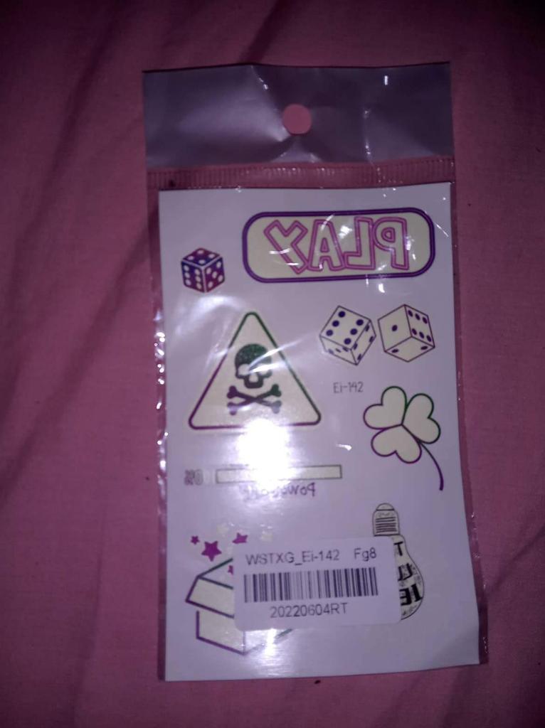 Pakeliui nulūžo prie pat žvaigždutės. Pakuotė ir tatuiruotė atkeliavo sulenkti. Nežinau, ar tai turės įtakos modeliui, kai bus perkelta ant odos. Užsisakiau dovaną savo vaikui, bet sulenktos būklės aišku ne tas pats.
