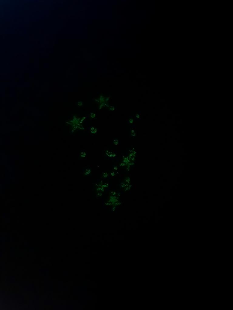 Jie lengvai prilimpa ir kaip aprašyme šviečia tamsoje...
