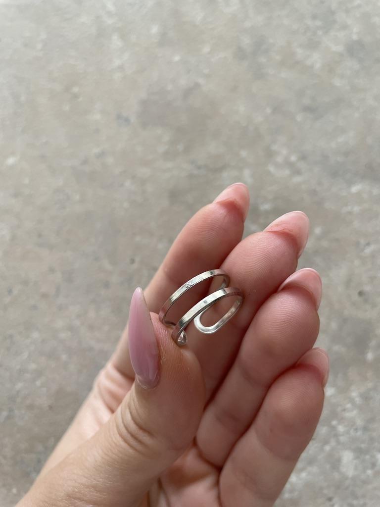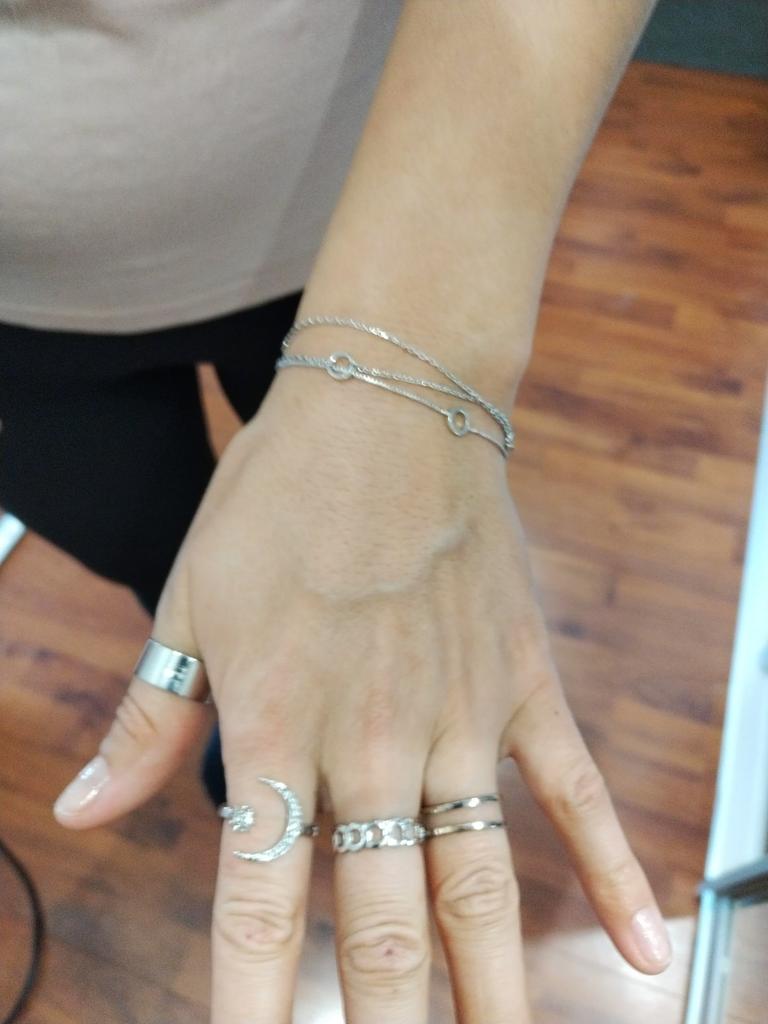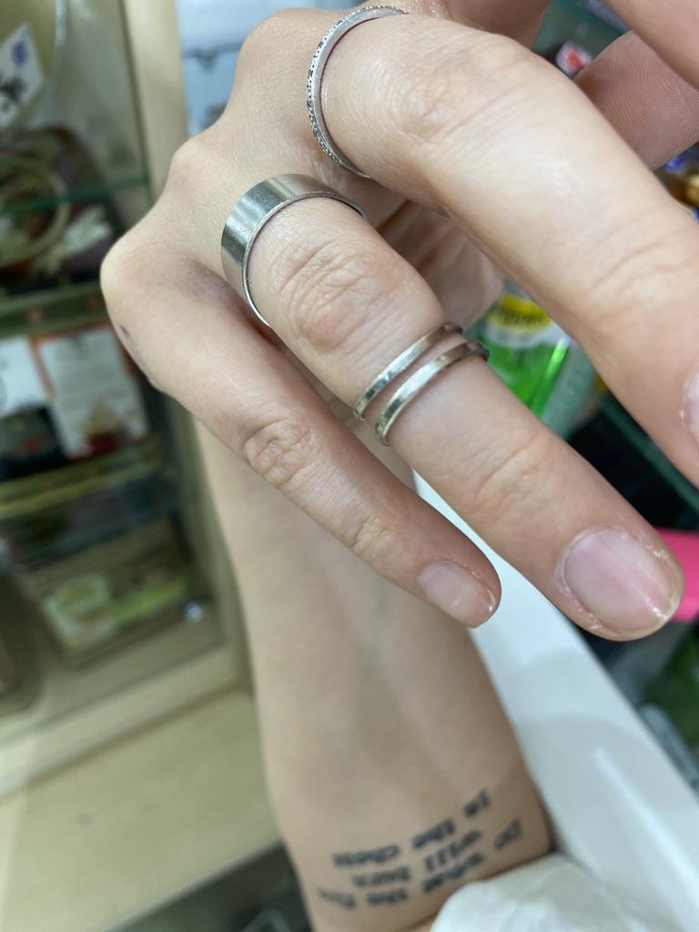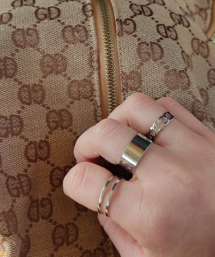 Dydis patogiai reguliuojamas ant visų trijų žiedų. Nešioju dažnai, bet puikiai papildo išvaizdą. Iš pradžių stengiausi nesušlapti, nes kažkur komentaruose skaičiau, kad patamsėjo. Bet juk porą kartų sušlapo ir nieko, vis tiek nesioksidavo