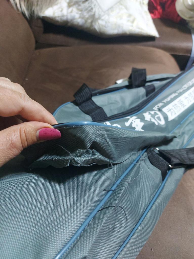 Krepšys yra pažeistas, įlenktas/sulūžęs. Siūlės prastai apdorotos.