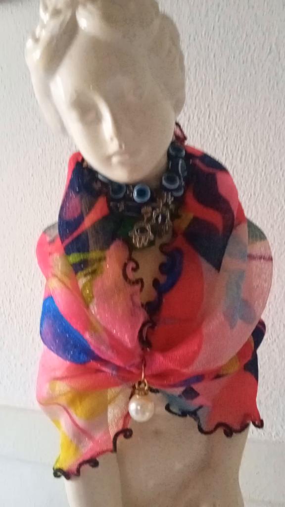 Labai subtilus šalikas su perlu, gražus. Į Ispaniją jis atvyko mažiau nei per mėnesį. Rekomenduoju pardavėją ir galutinį produktą