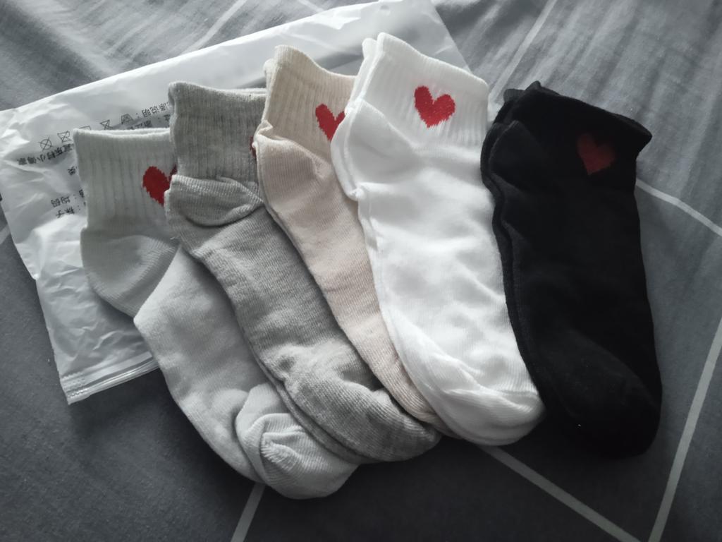 5 poros moteriškos trumpos kojinės raudonos širdelės mielos koledžo patogios moteriškos kojinės Minkštos medvilnės pavasaris vasara ruduo mergaičių kojinės Meias Sox