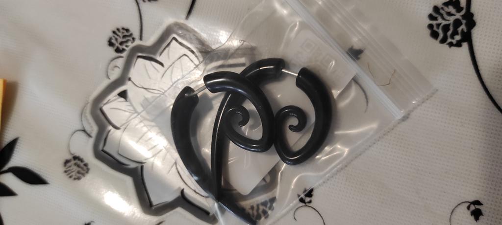 Alisouy Pair juodas akrilas netikras apgavikas, sukamas spiralinis ausų kūgio matuoklis, plečiantis auskarą tunelio kištukai auskarų vėrimas kūno papuošalai